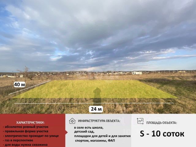В поиске идеального места для вашего нового дома? У нас есть то, что вам нужно! Продается участок 10,6 соток в СНТ " Мускат", село Лекарственное/ село Водное. Участок ровной квадратной формы без перепадов и уклонов. Находится в жилом массиве. Коммуникации находятся возле участка. Электричество по границе участка, вода - либо скважина, либо можно пробовать подключится к централизованной, в селе есть газ и канализация (напротив дома подключены). Хорошие подъезды к участку. Также есть в продаже смежный участок. Остановка общественного транспорта находится в пешей доступности. До Симферополя 20 км, до ближайшего моря 18 км, 16 минут езды. В соседнем селе (Пожарское) есть школа, детский садик. Не упустите возможность построить свой дом в этом живописном месте! Звоните! Номер объекта: 2773343 МЫ ГАРАНТИРУЕМ ФИНАНСОВУЮ БЕЗОПАСНОСТЬ ДЛЯ НАШИХ КЛИЕНТОВ. Полное юридическое сопровождение сделки. Высокий шанс одобрения ипотеки. Звоните, с удовольствием ответим на ваши вопросы! Код пользователя: 138264 Номер в базе: 2773343 Продам земельный участок в сельском поселении Пожарское Симферопольского района.