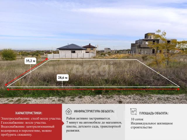 Срочно Продается участок,10.2 сот.,ИЖС, в селе Аркадьевка,Симферопольский р-н ! Участок правильный прямоугольный формы, имеется небольшой ровный уклон. Участок среди старой застройки, находится на возвышенности, это очень удобно в периоды подтопления, вся вода уходит вниз. Выезд к инфраструктуре 5 минут, Евпаторийское шоссе, 30 минут до моря, 15 минут до Симферополя. В шаговой доступности новая детская площадка. Школа гимназия, детский сад в соседнем селе Родниковое, села между собой не разъединены, из одного сразу въезжаете в другое, до садика и школы 5 минут на машине.Через поле также есть выезд в село Школьное, где также есть школа и детский сад. В доступности много магазинов и ПУД. Очень удобно, что этот район уже застроен, по границе участка проходит газ и электричество. Все коммуникации уже есть. Номер объекта:4259529 МЫ ГАРАНТИРУЕМ ФИНАНСОВУЮ БЕЗОПАСНОСТЬ ДЛЯ НАШИХ КЛИЕНТОВ. Полное юридическое сопровождение сделки. Высокий шанс одобрения ипотеки. Звоните, с удовольствием ответим на ваши вопросы! Код пользователя: 173594 Номер в базе: 4259529