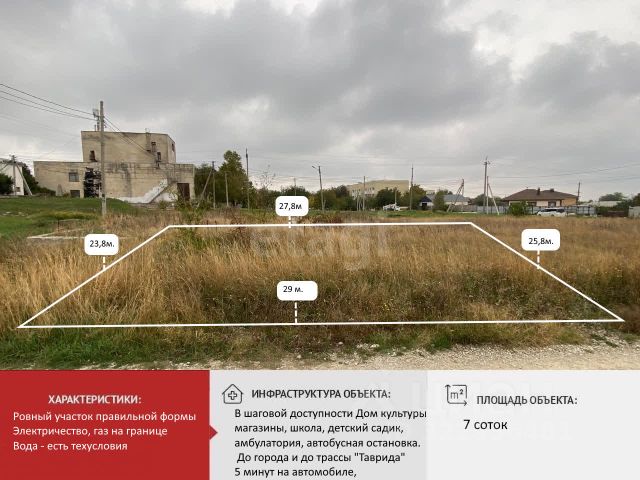 Участок 7 соток в с.Трудовое. Идеальный вариант для строительства дома с перспективой роста стоимости! Основные параметры: Площадь: 7 соток (ровный, прямоугольной формы) Расположение: с. Трудовое, (Симферопольский район) Активная застройка район с. Трудовое быстро развивается, что гарантирует рост стоимости недвижимости Участок расположен в жилой части села. Рядом Дом культуры, школа, детский садик, магазины, маркетплейсы. Отличная транспортная доступность всего 5 минут до города на автомобиле, удобный выезд на трассу "Таврида", рядом автобусная остановка. Коммуникации: Электричество, газ уже на улице (можно подключаться) Вода можно пробурить скважину (есть техусловия), ведут центральный водопровод. Отличная инвестиция активная застройка гарантирует рост цены участка Звоните прямо сейчас для уточнения деталей и организации просмотра! Номер объекта: 10039833 МЫ ГАРАНТИРУЕМ ФИНАНСОВУЮ БЕЗОПАСНОСТЬ ДЛЯ НАШИХ КЛИЕНТОВ. Полное юридическое сопровождение сделки. Высокий шанс одобрения ипотеки. Звоните, с удовольствием ответим на ваши вопросы! Код пользователя: 189436 Номер в базе: 10039833 Продается земельный участок в переулке Школьный в селе Трудовое.