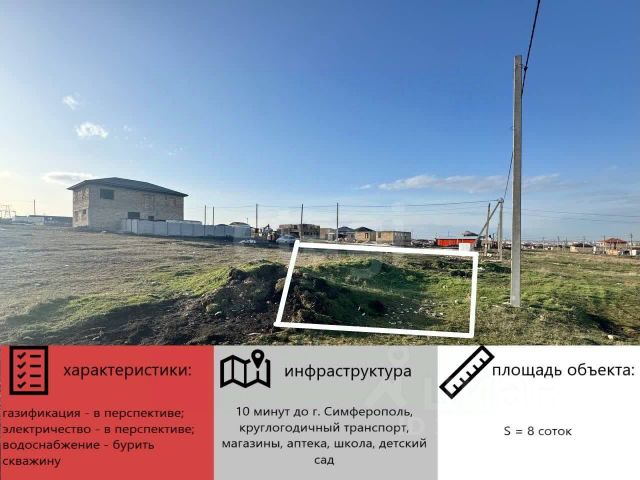 Продается земельный участок в с.Трудовое, Симферопольский район! Всего в 5 минутах от Симферополя Ищете идеальное место для строительства своего дома? У нас есть отличное предложение для вас! Характеристики участка: - Площадь: 8 соток - Категория земель: Земли населенных пунктов - Назначение: Индивидуальное жилищное строительство - Участок правильной формы, размеры 20 метров по фасаду и 40 м в глубину Коммуникации: - Водоснабжение: Скважина - Газоснабжение: В перспективе на конец 2025 года Этот участок окружен прекрасными природными пейзажами и свежим воздухом, что создаст комфортные условия для жизни! Активно строятся новые дома, и у вас будут соседи! На фото видно строительные материалы на соседних участках — это знак, что район живет и развивается. Рядом проживает сосед на постоянной основе! Инфраструктура и развитие: В ближайшей доступности есть все необходимые удобства для комфортной жизни: школы, детские сады, торговые центры, магазины, строительная база, автомойки, заправки, отделение банка, поликлиника, аптеки, лаборатория, частные клиники, банкетный зал, мечеть, церковь, а также пункты выдачи WB, Ozon, СДЭК и многое другое! Не упустите возможность стать владельцем этого замечательного участка! Для получения дополнительной информации и организации просмотра, пожалуйста, свяжитесь с нами.