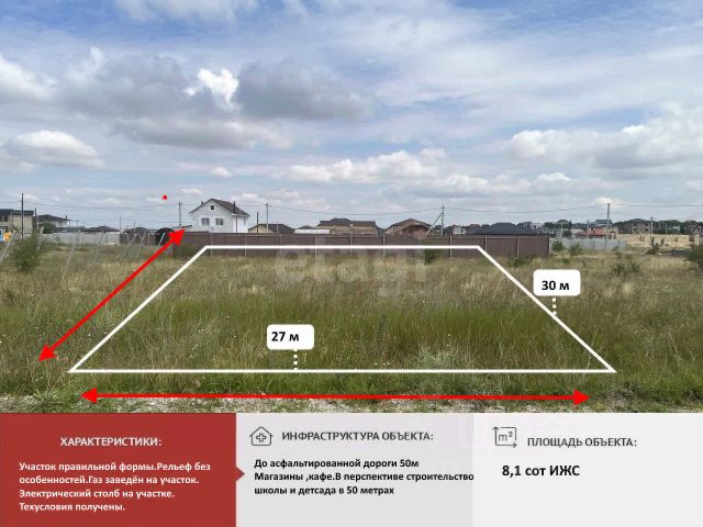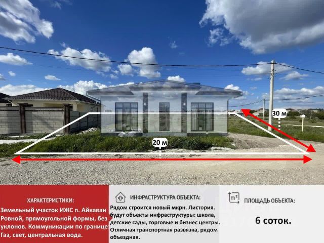 Объект 24331. Продается привлекательный земельный участок под ИЖС в пригороде Симферополя 8,1 сотки - идеальное место для строительства жилого дома в перспективном районе ! Этот участок- ваша возможность создать уютное пространство для жизни и отдыха. Преимущества: - Участок ровный и правильной формы, что создает идеальные условия для строительства. Участок находится в активно развивающемся районе. Быстрый выезд в город и на объездную дорогу - сделает вашу жизнь комфортной и удобной. - Рядом соседи уже построились, что создает уютную атмосферу для жизни. - Остановка общественного транспорта находится в шаговой доступности, также рядом находятся магазины и объекты первой необходимости. Подъездные пути обеспечивают легкий доступ к участку в любое время года. Коммуникации: - Электричество - столбы для подключения находятся всего в нескольких метрах. - Газовая труба расположена рядом. - Есть возможность подключения к центральному водопроводу. Правильная форма участка с размерами 31*26 м позволит воплотить любые архитектурные решения при строительстве жилого дома нашей строительной компанией ИЛИОН-строй. Компания ИЛИОН профессионально подберет недвижимость любого типа, исходя из Ваших пожеланий и бюджета, предлагая лучшие условия рынка. Земельный участок в поселке Айкаван Симферопольского района.