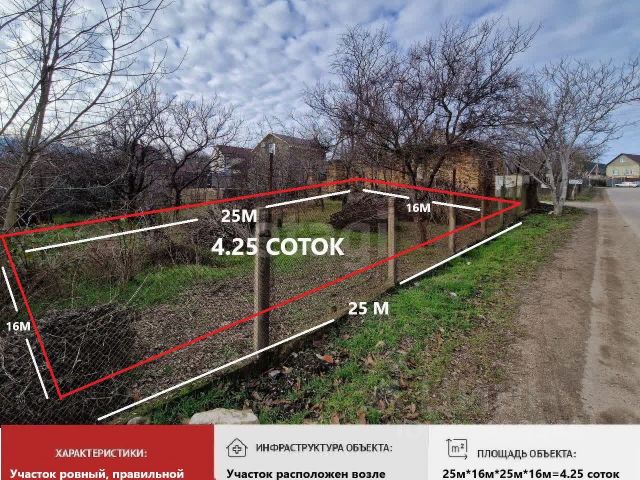 Отличный участок под строительство загородного дома для проживания! Предлагаем Вашему вниманию участок 4,2 соток, для полёта ваших самых смелых фантазий, насаждений нет, при этом плодородная земля будет радовать вас урожаем круглый год! Рядом с городом, в 15 минутах езды от центра. По направлению к участку нет пробок. Хорошие подъездные пути. Вдали от шумной трассы, что гарантирует тишину и спокойствие. Систематически ходит городской транспорт. Рядом село с развитой инфраструктурой. Недалеко школа, сад, продуктовые магазины, почта. Выгодные инвестиции сегодня, завтра оправдают ваши надежды, обеспечивая надёжный актив! Спешите посмотреть и приобрести! Звоните прямо сейчас! Устроим показ в любое удобное для Вас время! Компания "Этажи"-лучшее решение для покупателей! Ещё больше вариантов земельных участков и домов по направлению Белогорска, Вы можете найти у нас. Номер объекта: 3980569 МЫ ГАРАНТИРУЕМ ФИНАНСОВУЮ БЕЗОПАСНОСТЬ ДЛЯ НАШИХ КЛИЕНТОВ. Полное юридическое сопровождение сделки. Высокий шанс одобрения ипотеки. Звоните, с удовольствием ответим на ваши вопросы! Код пользователя: 179954 Номер в базе: 3980569