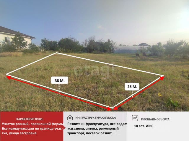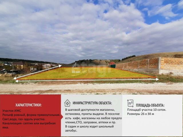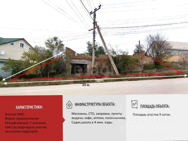 Продается участок (ИЖС) площадью 10 соток Участок находится в непосредственной близости к Симферополю в районе с развитой инфраструктурой. На участке есть капитальное строение из ракушки, которое вы можете обустроить на свое усмотрение 90:12:170601:1043 Преимущества: - участок угловой, прямоугольной формы - район активно развивается - удобная транспортная развязка - в пешей доступности остановка общественного транспорта, в районе есть аптека, кафе, множество магазинов, детский сад, развивающие центры - свет, газ по границе участка, возможно подключение к центральному водоснабжению Все документы готовы к сделке, полное юридическое сопровождение Организуем показ в удобное для Вас время Номер объекта: #1/549957/23345