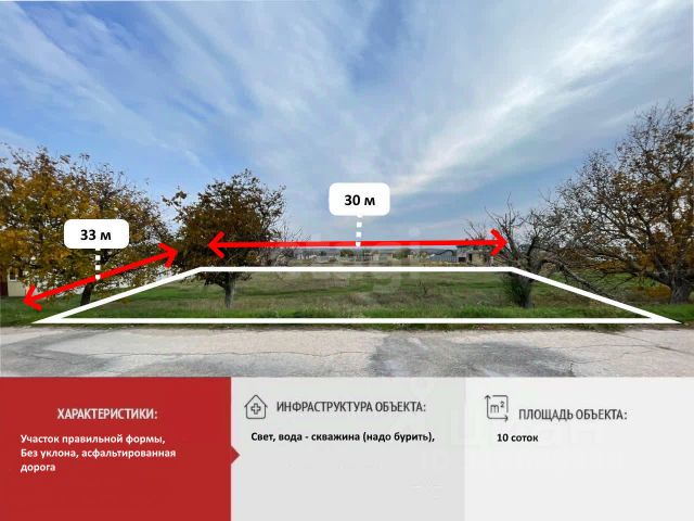 Объект 24333. Продается земельный участок 10 соток для строительства жилого дома в перспективном пригороде Симферополя ! Участок находится на жилой улице, всего в 5 минутах от Симферопольской объездной дороги что обеспечивает удобный доступ к основным транспортным артериям и близость к инфраструктуре. Коммуникации: - Электричество - на участке с счетчиком. - Вода - на участке Подъездные пути: - Удобный грунтовой подъезд, который позволяет добраться до участка в любое время года. Участок выходит на две улицы и имеет правильную форму позволит воплотить любые архитектурные решения нашей строительной компанией ИЛИОН-строй. Компания ИЛИОН профессионально подберет недвижимость любого типа, исходя из Ваших пожеланий и бюджета, предлагая лучшие условия рынка.