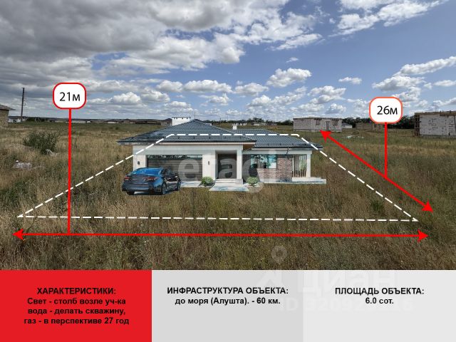Ваша мечта о загородной жизни - всего в 5 км от Симферополя! В с. Урожайное, Симферопольский район, продается участок 6,1 соток под индивидуальное жилищное строительство (ИЖС), где вы найдете все необходимое для комфортной жизни: Школу и детский сад для ваших детей Магазины, медпункт- все в шаговой доступности Спортивные площадки для активного отдыха Озеро для любителей рыбалки. Участок находится в 250 метрах от асфальтированной дороги, и всего в 8 км от Московской трассы. Удобная транспортная доступность: Автобус в Симферополь ходит каждые 30 минут Развязка Таврида-Трудовое-Урожайное в 5 км. Не упустите шанс построить дом своей мечты в живописном и комфортном месте! Звоните нам прямо сейчас, чтобы узнать подробности! Номер объекта: 5864390 МЫ ГАРАНТИРУЕМ ФИНАНСОВУЮ БЕЗОПАСНОСТЬ ДЛЯ НАШИХ КЛИЕНТОВ. Полное юридическое сопровождение сделки. Высокий шанс одобрения ипотеки. Звоните, с удовольствием ответим на ваши вопросы! Код пользователя: 112080 Номер в базе: 5864390