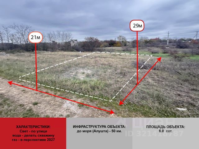 Продается великолепный земельный участок, площадью 6.3 соток, в границах Урожайновского сельского поселения,близ СТ "ЭДЕЛЬВЕЙС", Симферопольского района! Это уникальная возможность воплотить в жизнь мечту о собственном доме на природе, вдали от городской суеты. Участок удобной формы с отличным пятном застройки позволят вам реализовать любые архитектурные идеи, от уютного коттеджа до современного загородного дома. Все необходимые коммуникации проходят по границе участка. Расположение всего в 200 метрах от дороги обеспечивает легкий доступ и высокую транспортную доступность. Вы всегда сможете быстро добраться до всех необходимых объектов инфраструктуры: магазинов, школ и медицинских учреждений. УРОЖАЙНОЕ славится своим комфортом и дружелюбной атмосферой, а благодаря близости к Симферополю вы сможете наслаждаться всеми преимуществами городской жизни, не отказываясь от тишины и спокойствия загородной жизни. Не упустите уникальную возможность стать владельцем этого замечательного земельного участка! Звоните прямо сейчас, чтобы организовать просмотр и узнать больше о вашем идеальном месте для жизни или отдыха. Номер объекта: 4345029 МЫ ГАРАНТИРУЕМ ФИНАНСОВУЮ БЕЗОПАСНОСТЬ ДЛЯ НАШИХ КЛИЕНТОВ. Полное юридическое сопровождение сделки. Высокий шанс одобрения ипотеки. Звоните, с удовольствием ответим на ваши вопросы! Код пользователя: 117494 Номер в базе: 4345029