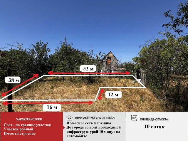 Арт. 118386197 Представляем Вашему вниманию земельный участок общей площадью 9 соток расположенный по адресу: Республика Крым, Симферопольский район, Урожайновское сельскоепоселение, СПК "Нефтяник" участок 82 ( Третий массив) Участок ровный, огороде сеткой рабочей. Коммуникации: свет по границе участка. На участке небольшое строение. Инфраструктура: Остановка общественного транспорта на расстоянии 350 метров от участкп. Многие соседи живут постоянно, массив активно застраивается. На машине до Симферополя 5 минут. В массиве есть магазины.