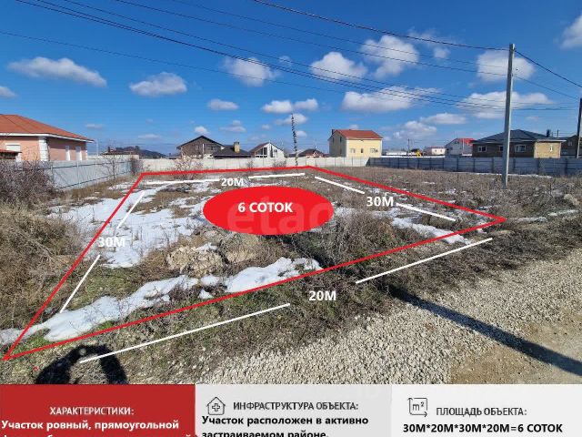 6 соток земли, ровных и готовых принять уютный дом, просторную усадьбу или перспективный инвестиционный проект. Участок четко оформлен, с единственным собственником — никаких сложностей, только чистые эмоции от создания своего пространства.