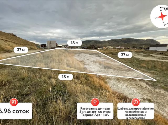 Объект 39. Продается участок с ограждением — идеальное место для вашего загородного дома! Предлагаем вашему вниманию прекрасный участок, 6 соток, расположенный всего в 500 метрах от Таврида Арт. Всего 10 минут — и вы на берегу моря, наслаждаясь морским воздухом и пляжным отдыхом. - Огороженный участок Участок огорожен забором, что предоставляет дополнительную безопасность и приватность, позволяя вам комфортно наслаждаться каждым моментом на вашей земле. - Развитая инфраструктура В поселке уже есть газ, а также запланировано подключение водоснабжения, свет по границе участка. Это упростит процесс подключения необходимых коммуникаций после покупки. Участок — отличная инвестиция в будущее! Вы сможете построить здесь уютный коттедж или дачу, а также использовать участок для ведения бизнеса, например, для организации кемпинга или отдыха. Не упустите возможность стать владельцем этого замечательного участка, где сочетаются удобное месторасположение и природная красота! Это идеальное место для создания уютного дома или загородного отдыха. Свяжитесь с нами для получения дополнительной информации и организации просмотра — ваш новый участок ждет вас!