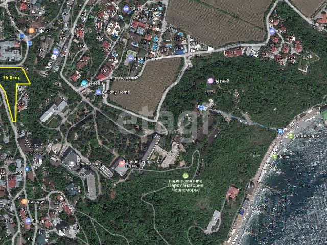 Продается жилой с собственным парком. Дом в Алупке на земельном участке 50 соток. На земельном участке: жилой дом площадью 175 кв.м., а также выстроен каркас трехэтажного монолитного здания площадью 500 кв.м.