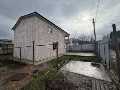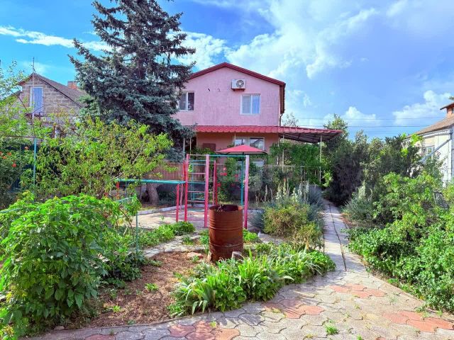 Дом одноэтажный 96,8 кв.м. 1982 года постройки, для круглогодичного проживания. Стены из крымского ракушечника, крыша металлошифер. Три жилые комнаты (12+12+18 кв.м.), кухня-столовая (17,5 кв.м), 2 веранды, в доме изолированные туалет и ванная комната с душевой кабиной. Отопление твердотопливный котел и батареи водяного отопления, электрический бойлер. В перспективе планируется газификация поселка.
