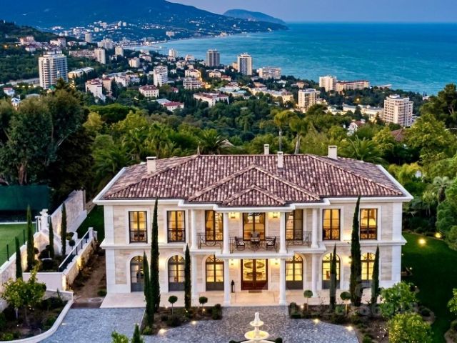 Продам уникальный особняк в курортном поселке Кореиз! На облагороженном участке с элементами ландшафтного дизайна расположены: жилой дом: общая площадь 274,8 кв.м. Планировка: цокольный этаж - бильярдная с камином, постирочная, гардеробная, сан.узел и технические помещения; 1-й этаж - прихожая, гостиная с камином, кухня, сан.узел; 2-й этаж - три спальни (две из них с балконами), два сан.узла; 3-й этаж - мансардный - детская игровая зона. гараж на две машины, над ним - гостевой домик - спальня, кухня-ниша, сан.узел и большая терраса баня с открытой террасой и мангальной зоной бассейн с видом на море детская площадка теннисный корт отдельно стоящее здание, в котором находятся: спортзал, комната отдыха, сан.узел, технические помещения, большой гараж на 5 автомобилей, гостевая комната с сан.узлом вольер для животных Во всех зданиях установлены панорамные окна, открывается потрясающий вид на море и горы. Коммуникации: водоснабжение и канализация - централизованные, дополнительно установлена резервная емкость для воды на 10 тонн, электричество 15 кВт (возможно увеличение), видеонаблюдение. В настоящее время активно идет газификация поселка. На всей территории участка выполнено озеленение, высажены хвойные и плодовые деревья и кустарники, цветы - черешни, яблони, айва, гранат, хурма, лимон, орех, мушмула, розмарин, виноград, лаванда, олеандр, дубы, сосны, ели, кипарисы, юкка, розы, лаванды. Участок по периметру огорожен, установлены автоматические ворота. До моря 1,3 км. Вся мебель и техника остаются новому владельцу. Документы РФ полностью готовы к продаже, один взрослый собственник.