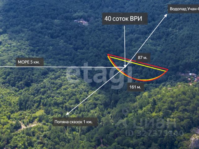 Продаётся видовой участок в районе Поляны Сказок в Ялта площадью 15 соток . Участок квадратной формы, по границе которого протекает горный ручей. Участок расположен в элитном районе Ялты. Подъездная дорога начинается от знаменитого зоопарка Ялты Поляна сказок, проезжая СПА-комплекс Поляна сказок и эксцентричный ресторан "Горный Ручей" вы оказываетесь среди густого леса и престижных вилл. Проезжая по асфальтированной дороге к участку Вам открывается панорамный вид на горы и водопад Учан-су. Район застраивается и облагораживается, к границе участка уже провели канализацию и электричество. Сам участок правильной формы, мы показали это на планировке. Хоть участок имеет небольшой уклон, ландшафт рай для дизайнера. Мы так же приложили фотографии с высоты предполагаемого 2-3 этажа. Снизу участка спуск к горному ручью, и ресторану. Небольшой уклон участка является непосредственным плюсом, деревья сверху защищают от ветра и создают тень, поэтому летом здесь прохладно, а зимой ничего негде не продувает. Так же в 30 метрах от участка делают дорогу, но на участке технику не слышно, прекрасная шумоизоляция. Коммуникации: -Электричество возможно подключение -Газ возможно подключение; -Вода и канализация уже проведена к соседним участкам; Локация: Купить участок в Ялта в районе Поляны сказок, пожалуй, лучшее решение, если вы цените престиж и уединение с природой. Участок расположился в уникальном месте. Прям у подножья горы с панорамой на плато Ай-Петри. В ближайшей доступности находится ресторан "Горный ручей", СПА-отель "Поляна сказок", зоопарк "Поляна сказок", роскошные виллы по соседству, всего в 5 минутах езды город Ялта центр курортной жизни Крыма, его жемчужина.