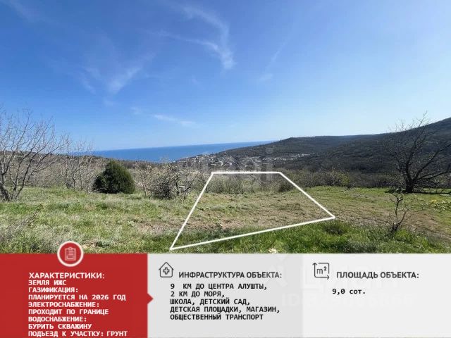 Продаётся участок 30 соток в живописном посёлке Малый Маяк (окрестности Алушты) Предлагаем к продаже просторный земельный участок площадью 30 соток в уютном посёлке Малый Маяк — всего в 15 минутах езды от Алушты и 30 минутах от Ялты. О посёлке Малый Маяк — идеальное место для спокойной и размеренной жизни вдали от суеты. Здесь царит умиротворяющая атмосфера: нет шумных ночных развлечений, но при этом развита вся необходимая инфраструктура: • остановки общественного транспорта; • магазины; • аптеки; • детский сад; • школа. До моря — всего 10 минут езды. В окрестностях Малого Маяка вас ждут мелкогалечные пляжи с пологими спусками к морю: как оборудованные (с лежаками и зонтиками), так и уединённые дикие участки. Вода здесь чистая и прозрачная — настоящий рай для любителей купания и отдыха у воды. Описание участка Участок состоит из трёх смежных наделов площадью 5, 10 и 15 соток. Его главные преимущества: • панорамный вид на море и горы (вид не будет перекрыт в будущем); • все коммуникации проходят по границе участка; • удачное расположение с отличной транспортной доступностью. Объекты на участке На территории расположены четыре двухэтажных коттеджа, находящихся на этапе строительства. Уже выполнены все работы по заливке железобетонного каркаса. Площадь каждого коттеджа — 250 кв. м. Планировка коттеджей: • Первый этаж: крытая парковка на два автомобиля, бассейн с зоной отдыха, кухня гостиная, спальня и два санузла. • Второй этаж: несколько спален и два санузла. Почему это выгодное предложение? Этот объект можно рассматривать как: • перспективный инвестиционный проект — готовый комплекс коттеджей в живописном и востребованном районе откроет широкие возможности для сдачи в аренду или дальнейшей продажи; • комфортное жильё для нескольких семей — каждый коттедж обеспечит высокий уровень комфорта и приватности. Не упустите шанс стать владельцем недвижимости в одном из самых живописных уголков Крыма!