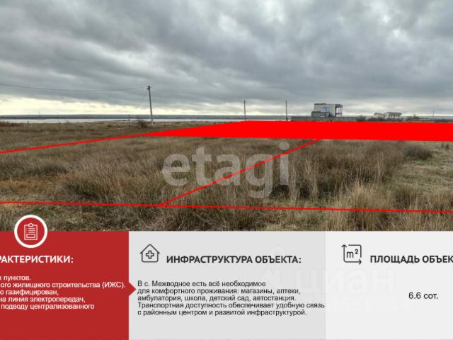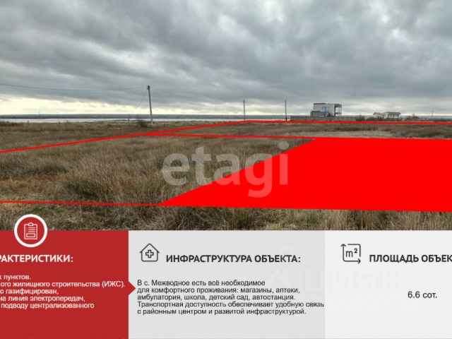 Продается участок в селе Межводное Черноморского района. Площадь 10 соток, статус: ИЖС - подойдет под строительство дома или гостиницы. Полный пакет документов РФ. Развитая инфраструктура, рядом с участком проходит ЛЭП, подключение электричества без проблем. В пешей доступности школа, садик, магазины.До пляжа 1.5 км, до Евпатории 80км. Отличный вариант приобретения под застройку! Документы российского образца. Рассмотрим любые виды оплаты. Звоните, пишите! Буду рада ответить на Ваши вопросы и провести показ. МЫ ГАРАНТИРУЕМ ФИНАНСОВУЮ БЕЗОПАСНОСТЬ ДЛЯ НАШИХ КЛИЕНТОВ. Полное юридическое сопровождение сделки. Высокий шанс одобрения ипотеки. Звоните, с удовольствием ответим на ваши вопросы! Код пользователя: 181144 Номер в базе: 3820567