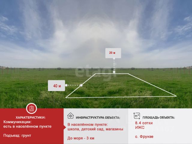 Объект 6550. Продам Участок 10 соток ( ИЖС ) в поселке Фрунзе (Сакский район, Крым) на ул.Терещенко. ПО ПОРУЧЕНИЮ ПРЕЗИДЕНТА В.ПУТИНА УЖЕ ИДЕТ СТРОИТЕЛЬСТВО САМОГОАМБИЦИОЗНОГО ПРОЕКТА В РОССИИ - ПРОЕКТ " ПЯТЬ МОРЕЙ И ОЗЕРО БАЙКАЛ ". Забудьте все, что вы знали об отдыхе. Здесь создается мирбудущего: 17 премиальных отелей — как в Сочи илиДубае. Самая большая набережная в России — набережная более 20-тикм для прогулок с видом на море и изобилием развлечений премиум - класса! Круглогодичный курорт: летние пляжи, премиальные СПА -комплексы, осенние фестивали и многообразие развлечений. Жизнь здесь кипит 365дней в году. Уже в 2027-2028 году откроются первые трикурорта-легенды: "Птица", "Золотые пески России" и "Крымская Ривьера".А это значит, что ваши инвестиции начнут работать уже совсем скоро! Почему это уникальный шанс? Проект — под патронатом государства. Общий объем инвестиций — свыше 133миллиардов рублей. Это не просто обещания, это гарантия того, что здесь будетлучшее. Вы не просто купите землю. Вы приобретете статус, видна море и актив, который будет расти в цене с каждым днем. Почему это предложениеуникально? Потому что оно предлагает три в одном: 1. ИДЕАЛЬНОЕ МЕСТО ДЛЯ ЖИЗНИ В РАЮ. 2. БЛЕСТЯЩАЯ ИНВЕСТИЦИЯ СГОСУДАРСТВЕННОЙ ПОДДЕРЖКОЙ. 3. РОСТ СТОИМОСТИ ВАШЕЙЗЕМЛИ: ЦЕНЫ В РАДИУСЕ УЖЕ РАСТУТ. С ЗАПУСКОМ КУРОРТОВ ИХ РОСТ СТАНЕТСТРЕМИТЕЛЬНЫМ. Ваша повседневная роскошь: Представьте: вы живете в месте, гдедругие отдыхают за деньги. Ваше здоровье: Бесплатный инеограниченный доступ к знаменитым лечебным грязям (Сакские грязи ) — то, за что курортники платят тысячи, для вас становитсяежедневной нормой. Ваш доход: Летний ажиотажво Фрунзе позволяет сдавать номера от 6000 рублей в сутки. Всего несколькономеров — и ваша недвижимость начинает работать на вас, создавая стабильныйпассивный доход. Это не просто недвижимость. Это ваша курортнаярезиденция, которая окупает себя! Уникальноерозовое озеро Сасык-Сиваш с целебными грязями — в 15 минутах езды. Десяткидругих озер с лечебными грязями — рядом. Гармония с природой: В 40 минутах — озероЛебедей, где вы можете наблюдать за грациозными птицами в любое время года. Идеальное пространство для вашего дома: - 10 соток ( ИЖС ). Участок ровный, чистый, правильной прямоугольной формы, безстроений. - Земля - ЧЕРНОЗЕМ - здесь всё ждёт, чтобы вы воплотили ваши архитектурные фантазии. - остановка автобусов - 3 минуты пешком. - Кадастровый номер 90:11:230102:612 Коммуникации: - Электричество - заведено на участок 15 кВт ( три фазы ) - Вода Артезианская - Газ - подведен к участку - Начали подготовку под накатку асфальтированной дороги между участками . Доступ к морю: - всего 25 -30 минут пешком ведут вас к открытому и чистому морю, котороеприветствует вас своими бирюзовыми волнами. - В жаркие летние дни к пляжу курсируют автобусы, а дорога на машине занимаетвсего 5 минут. - Остановка общественного транспорта - 3 минуты пешком. Инфраструктура: В поселке Фрунзе уже есть всё необходимое для комфортной жизни: школа, детскиесады, амбулатория, супермаркеты, кафе, рестораны, церковь Рождества Богородицы,Дворец Культуры. Также можно купить два соседних участка 8 и 10 соток . Документы готовы к сделке! Полное юридическое сопровождение сделки до получения перехода правсобственности. Подходит под любую форму расчета: наличные, ипотеку или кредит, дистанционныесделк