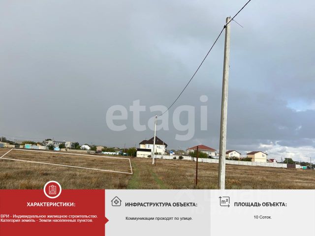 Продается земельный участок 8 соток для ИЖС недалеко от моря в небольшом экологически чистом курортном поселке Витино, ул. Космическая, 24 ХАРАКТЕРИСТИКИ: Площадь - 8 соток; Категория земель - земли населенных пунктов. Вид разрешенного использования - ИЖС (индивидуальное жилищное строительство), можно построить дом и прописаться. КОММУНИКАЦИИ: - электричество 15 кВт на участке; - подключено центральное водоснабжение; - газ проходит по границе участка - есть возможность быстрого подключения. ПРЕИМУЩЕСТВА: - море рядом; - все готово для начала строительства Дома - участок правильной прямоугольной формы - удобно для строительства дома и планировки участка; - хороший подъезд к участку. Посёлок Витино — тихое и экологически чистое место, известное своими широкими песчаными пляжами и чистейшим морем с пологим входом в море. Также в поселке находится одно из уникальных природных достопримечательностей Крыма - озеро Аирчинское, которое славится уникальными илово - сульфидными лечебными Грязями приморского типа. Участок отлично подойдёт для: - строительства дома для постоянного проживания; - дачи у моря; - гостевого дома или дома для сдачи отдыхающим. Земля у моря стабильно растёт в цене, поэтому участок также подходит как инвестиция. РАССТОЯНИЯ: - до моря всего 1 км, а это 10-15 минут неспешным шагом; - Евпатория - 20 минут на машине, или на рейсовом автобусе; - Аирчинское лечебное озеро - 7 минут; - магазины -в пешей доступности. ДОКУМЕНТЫ: идеальные В собственности больше 5 лет, один взрослый собственник, без обременений, быстрый выход на сделку. Все документы готовы к сделке. Звоните или пишите — отвечу на любые вопросы и договоримся о просмотре участка. Также продается соседний участок 8 соток, абсолютно идентичный.
