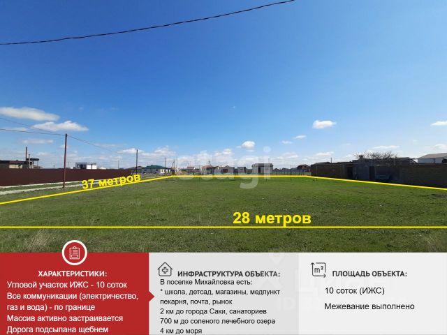 Объект 520. ИДЕАЛЬНЫЙ УЧАСТОК У МОРЯ В КРЫМУ! С. МИХАЙЛОВКА ЖДЕТ ВАС! Мечтаете о собственном доме на солнечном полуострове? Представляем вашему вниманию уникальное предложение, которое нельзя упуст160201ить! Продается земельный участок в живописном с. Михайловка, Республика Крым! Что делает это предложение особенным? • 10 соток под ИЖС: Просторный участок для строительства вашего идеального дома, с местом для сада, зоны барбекю или даже бассейна! Воплотите все свои архитектурные фантазии! • Все коммуникации по улице: Электричество, водоснабжение и газ уже проходят вдоль участка значительная экономия времени и средств на подключение! • Всего 3 км до моря: Наслаждайтесь свежим морским бризом и легким доступом к пляжу каждый день! Идеально для утренних пробежек, вечерних прогулок и летнего отдыха. • Тихое и уютное село Михайловка: Наслаждайтесь спокойствием загородной жизни вдали от суеты, но при этом имея быстрый доступ ко всей необходимой инфраструктуре. • ИЖС (Индивидуальное Жилищное Строительство): Гарантия того, что вы сможете построить жилой дом и оформить прописку. Это идеальное место для: • Семейного гнезда: Постройте дом, где вырастут ваши дети, и будут собираться поколения! • Дачи мечты: Уезжайте от городской суеты в свой личный рай у моря. • Выгодной инвестиции: Земля в Крыму, особенно с такими параметрами, постоянно растет в цене! Не упустите свой шанс создать жизнь у моря! 90:11:160201:1411