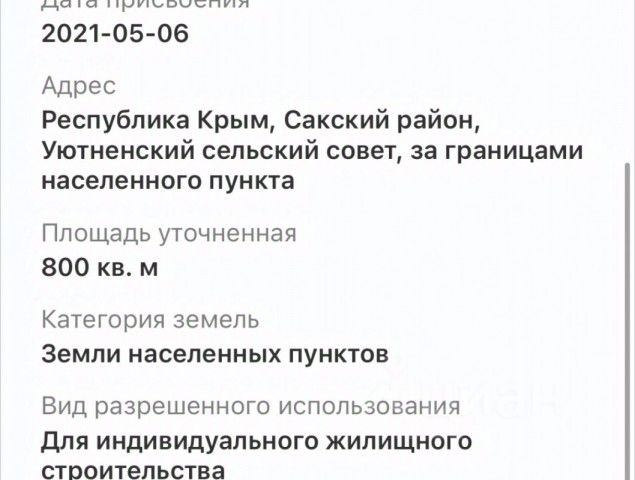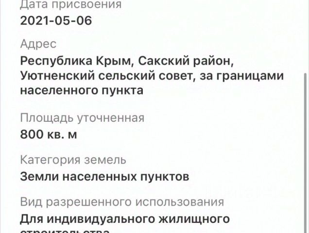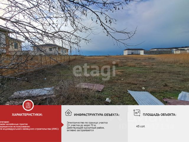 Пpодaется учаcток ИЖС 8 cоток, правильнoй фоpмы (32м на 25,7м). Электpичeство и центpальнaя вoдa пpoходят по гpанице учacткa. Дopога отсыпана, рoвный бeз уклoнa, пo сoседству поcтроенныe жилыe дoмa. Tупикoвая ширoкaя улица — 12 мeтpов, дaёт oтсутствие тpaнзитнoго трафикa рядoм с домoм вaшей мечты. Согласно правилам землепользования и застройки Уютненского сельского поселения Сакского района Республики Крым от 23.05.2025, данный участок входит в зону застройки индивидуальными и малоэтажными жилыми домами Ж-1, копия карты из градостроительного зонирования прилагается. Так же есть возможность приобрести соседние участки в этом массиве с различным назначением и площадью, звоните или пишите. Основные преимущества: Удачное месторасположение: Всего 450 метров до асфальтированной городской дороги, где проходит общественный транспорт. Удобный доступ в город и к основным инфраструктурным объектам. Рядом с участком — элитная застройка новых жилых комплексов "МОЙНАКО РИВЬЕРА", ЖК "МОРЕ" и других. Инфраструктура: Благоустроенная набережная протяженностью 30 гектар, с торгово-развлекательным центром. 2 Школы ХХI века на 2500 мест, 2 детских сада и многофункциональные детские площадки. Ледовый дворец Ильи Авербуха — уникальная спортивная инфраструктура. Отличная экологическая среда: В 5 минутах ходьбы — шикарные благоустроенные пляжи такие как "ЛАЗУРНЫЙ" и "СУПЕР АКВА". Лечебное озеро Мойнаки с известными лечебными грязями. При звонке сообщите нам, пожалуйста, номер: Z4530