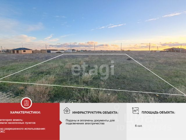 Продам земельный участок 6 соток, с. Уютное на пересечении ул. Айвазовского и 9 Мая, на закрытой территории, в районе Песчанки, 10 км до Евпатории.