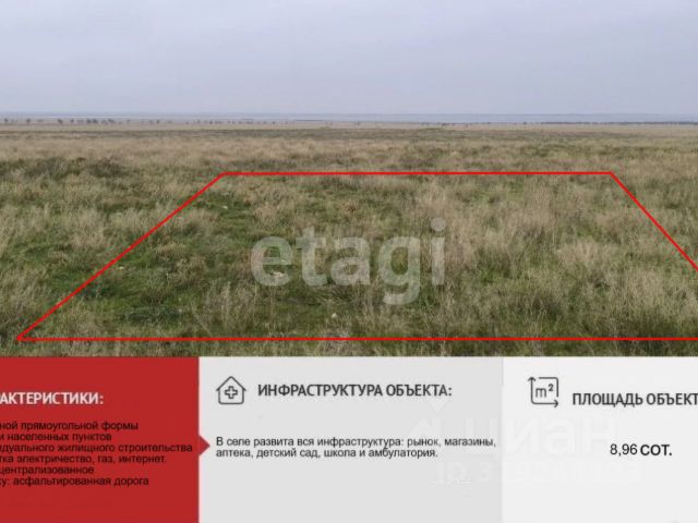 **Купите свой кусочек рая в Республике Крым!** Продается земельный участок 6 соток всего в нескольких шагах от замечательных песчаных пляжей с белым песком! **Преимущества:** - Возведение домов (отлично подойдет для дачного отдыха или личного подсобного хозяйства). - Удобный доступ благодаря новой автомобильной дороге до Симферополя и Евпатории. - Возможность покупки в ипотеку и удалённой сделки — мы заботимся о вашем времени и удобстве! **Инвестируйте в своё будущее:** Покупка земельного участка — это надежное и выгодное вложение. Все участки уже отмежеваны и готовы к продаже. Мы обеспечим безопасное оформление сделки через МФЦ! **Приглашаем на бесплатную экскурсию!** Убедитесь в красоте и перспективах вашего нового участка. Не упустите возможность начать новую жизнь у моря! **Пишите прямо сейчас!** Ответим на все ваши вопросы и поможем сделать правильный выбор. Всю подробную информацию вышлем по запросу. Мы на связи и всегда рады помочь вам! Не откладывайте свою мечту на потом — такой шанс бывает не часто!