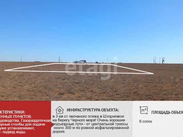 Продаётся участок 27 соток в с. Шаумян, Сакского района, черноморское направление. Возле главной дороги. Вблизи к городу Евпатория, на расстоянии 10 км. Расстояние до береговой части моря 12 км. Участок ровный, правильной формы. Вид разрешенного использования - ИЖС Готовы к быстрому выходу на сделку. Рассмотрим проведение сделки дистанционно. Номер объекта: #1/548393/23345
