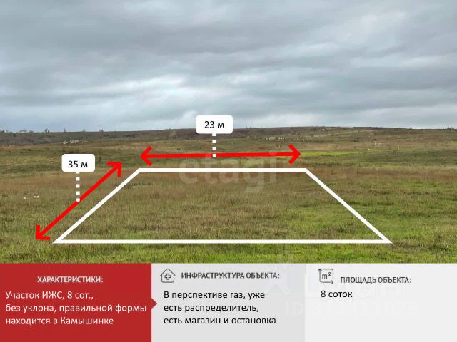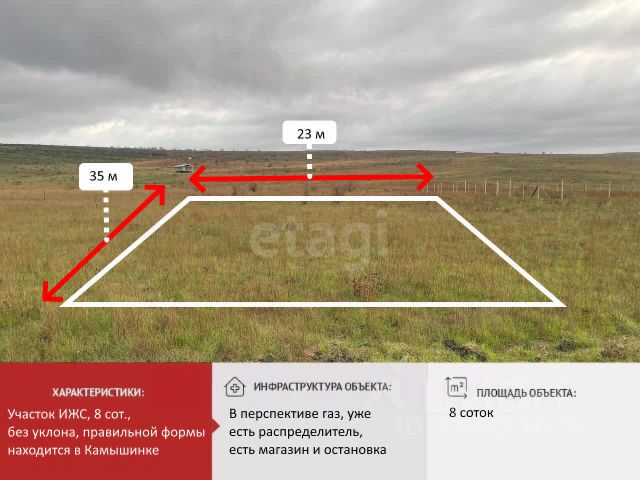 Объект 24422. Если не дозвонились, пишите в сообщения. Продаётся отличный земельный участок площадью 8 соток, расположенном в селе Камышинка . Преимущества участка: Тихое место, до города 10 км, до моря 25 км, до речки 200м, до остановки 300 м. Вокруг ведется активная застройка, уже живут соседи рядом. Подведены коммуникации: имеется доступ к электричеству и воде. В перспективе на 2027 год планируется газификация этих участков. Отличная возможность приобрести прекрасный участок в живописном районе с великолепными видами ! Ровная форма участка позволит воплотить любые архитектурные решения при строительстве жилого дома нашей аккредитованной строительной компанией ИЛИОН-строй. Компания ИЛИОН профессионально подберет недвижимость любого типа, исходя из Ваших пожеланий и бюджета, предлагая лучшие условия рынка. Подберем участок по вашему запросу , проверим юридическую чистоту объекта. Поможем сопроводить сделку
