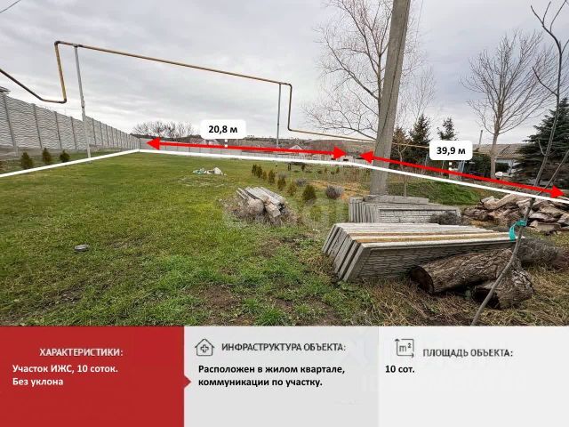 Участок для строительства! Участок правильной прямоугольной формы, ровный, общей площадью 8 соток! Назначение земли - ИЖС! Документы РФ! По границе участка газ, центральный водопровод, свет подключен! Рядом расположен детский сад и школа! В шаговой доступности магазин! Прямая городская маршрутка! Подъездные пути - асфальт! Удобная транспортная развязка! Компания "Этажи" - лучшее решение для покупателя! Звоните и записывайтесь на просмотр прямо сейчас! Код объекта: 11994315 МЫ ГАРАНТИРУЕМ ФИНАНСОВУЮ БЕЗОПАСНОСТЬ ДЛЯ НАШИХ КЛИЕНТОВ. Полное юридическое сопровождение сделки. Высокий шанс одобрения ипотеки. Звоните, с удовольствием ответим на ваши вопросы! Код пользователя: 112080 Номер в базе: 11994315