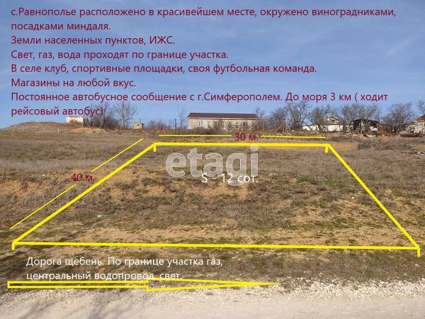 Уникальное предложение! Продается идеальный земельный участок с коммуникациями! Предлагаем вам, приобрести ровный участок, площадью 14,9 соток, расположенный в живописном районе,село Равнополье, Кольчугинское сельское поселение, Симферопольский район. Этот земельный надел — отличный выбор для строительства вашего загородного дома или дачи. Все коммуникации — газ, электричество и вода — проходят по границе участка, что значительно упрощает процесс подключения и строительства. Наслаждайтесь комфортом и уютом в собственном доме, окруженном природой! Участок находится в удобной локации с развитой инфраструктурой. В непосредственной близости расположены магазины, школы, детские сады и медицинские учреждения. Также рядом есть остановки общественного транспорта, что обеспечит легкий доступ к центру города и другим районам. Природные зоны для отдыха и прогулок находятся всего в нескольких минутах ходьбы. Участок полностью готов к продаже, все документы оформлены и готовы к передаче. Мы предлагаем гибкие условия оплаты, включая возможность рассрочки. Не упустите шанс стать владельцем этого замечательного земельного участка! Компания "Этажи" — ваш надежный партнер! Мы гарантируем профессиональное сопровождение на всех этапах сделки и индивидуальный подход к каждому клиенту. Обратитесь к нам, и мы поможем вам осуществить вашу мечту о собственном земельном участке! Номер объекта: 7644872 МЫ ГАРАНТИРУЕМ ФИНАНСОВУЮ БЕЗОПАСНОСТЬ ДЛЯ НАШИХ КЛИЕНТОВ. Полное юридическое сопровождение сделки. Высокий шанс одобрения ипотеки. Звоните, с удовольствием ответим на ваши вопросы! Код пользователя: 182955 Номер в базе: 7644872