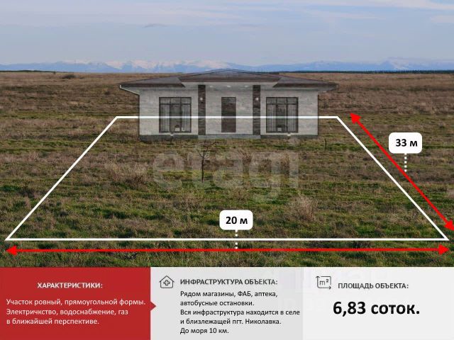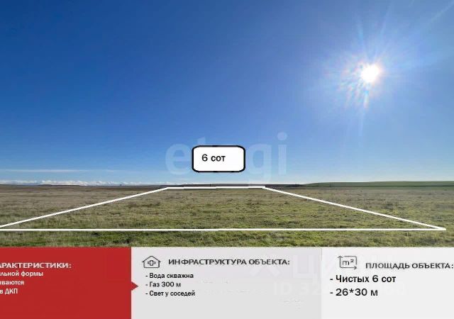 УЧАСТОК ВАШЕЙ МЕЧТЫ! В центре прекрасного поселения. По границе участка газ, электричество, центральный водопровод ( перебоев с водой нет, новые трубы, меняли в 2018 г). В селе есть несколько магазинов на любой вкус. ФАП, клуб, спортивная площадка для взрослых и новая детская площадка. Своя футбольная команда. Рядом мечеть. До моря рукой подать 6 км с Береговое (ходит рейсовый автобус), 10 км с.Николаевка. До Симферополя 30 км, Саки ( лечебное озеро) 20 км, Евпатория 40 км, Севастополь 60 км. Звоните прямо сейчас и этот участок будет ваш! встретимся покажем в любое удобное для вас время. Компания "Этажи" - лучшее решение для покупателей! Код объекта: 2634023 МЫ ГАРАНТИРУЕМ ФИНАНСОВУЮ БЕЗОПАСНОСТЬ ДЛЯ НАШИХ КЛИЕНТОВ. Полное юридическое сопровождение сделки. Высокий шанс одобрения ипотеки. Звоните, с удовольствием ответим на ваши вопросы! Код пользователя: 179389 Номер в базе: 2634023