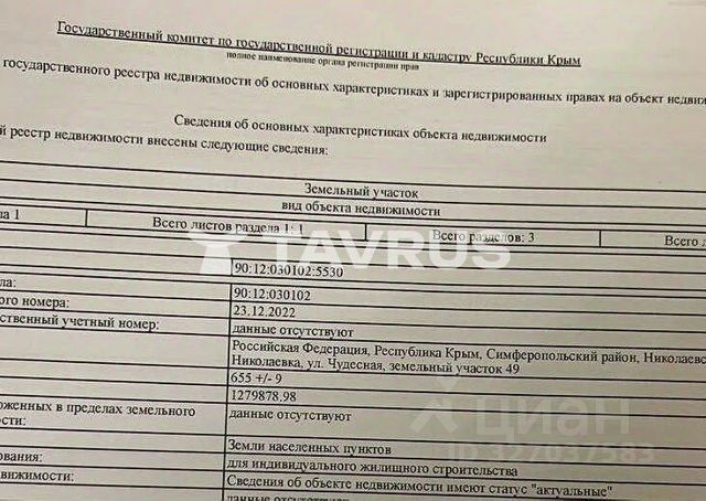 Продам участок- 8,25сот. в пгт Николаевка на побережье Черного моря. Единственный поселок на побережье, относящийся к Симферопольскому р-ну. Назначение- ИЖС. Участок прямоугольной формы, ровный. К участку подключено электричество- 15квт, есть скважина на воду, газ по меже. На участке высажены черешня -3шт., абрикос, груша, слива, виноград десертный, смородина, крыжовник, клубника. Деревья в этом году начинают плодоносить. Земля легкая, плодородная. Соседи, прекрасные люди, уже живут. До моря пешком 10-12 минут. Активно развивающийся поселок с почти двухсотлетней историей. В перспективе станет городом. В посёлке в шаговой доступности расположены школа, детский сад, амбулатория и станция скорой помощи, аптеки, почтовое отделение, банк, столовые, кафе и рестораны, парковые зоны, детские и спортивные площадки. ходят автобусы до Симферополя, Севастополя, Евпатории. Поселок находится в очень удобном с географической точки зрения месте, доступен весь полуостров в пределах 1,5-2ух часов езды на машине. Доступ к морю без обрывов и крутых спусков(подъемов). Возможен торг.