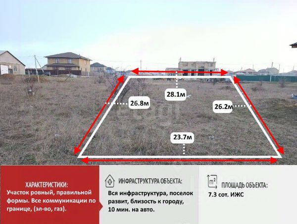 Продается земельный участок! ИЖС! Ищете идеальное место для жизни вдали от городской суеты? Предлагаем Вашему вниманию уникальный земельный участок. Площадь участка 6.7 соток. В непосредственной близости имеется вся инфраструктура! Рядом с участком горы и лес,такжe нeдaлeкo от участок есть 3 больших озеpа, природа заxвaтывaeт дуx. Земельный участок ровный, без уклона, сам участок правильной квадратной формы. Преимущество данного участка: удобный подъезд. Электричество и газ на границе участка, вода - нужно бурить скважину. Рядом активно ведется строительство новых объектов, что свидетельствует о растущем интересе к данному району. Звоните! Организуем показ в удобное для Вас время. Номер объекта: 9074378 МЫ ГАРАНТИРУЕМ ФИНАНСОВУЮ БЕЗОПАСНОСТЬ ДЛЯ НАШИХ КЛИЕНТОВ. Полное юридическое сопровождение сделки. Высокий шанс одобрения ипотеки. Звоните, с удовольствием ответим на ваши вопросы! Код пользователя: 126636 Номер в базе: 9074378