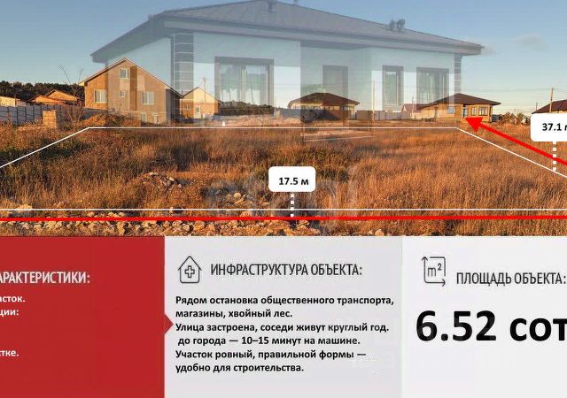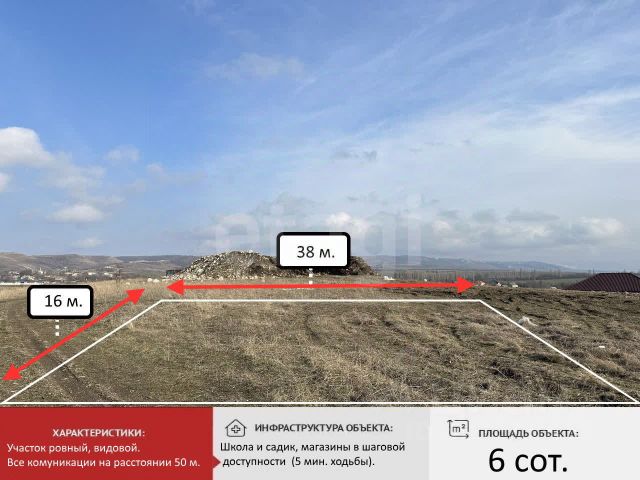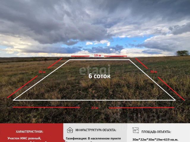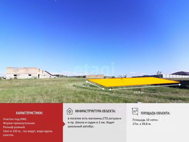 Площадь участка 8 соток, предназначен для индивидуального жилищного строительства.