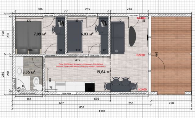Одноэтажный каркасный дом 42,5 кв.м. Продуманная планировка позволяет с комфортом разместить в доме 4 человека. Кухня гостиная с уютной зоной отдыха, санузлом и спальней - полноценная альтернатива квартирному варианту, без соседей и с выходом на собственную веранду и сад. Полностью готовый дом к заселению: внутренняя и внешняя отделка, скрытая электрика, розетки, выключатели, светильники, панорамные окна и двери, межкомнатные двери и укомплектованный сантехникой сан.узел. Дом устанавливается на подготовленный фундамент, который наши специалисты устанавливают практически сразу после подписания договора. Кухня-гостиная - 19,64 м2 Спальня 1 - 7,09 м2 Спальня 2 - 7,09 м2 Санузел - 3,55 м2 Удачное сочетание надежных материалов, продуманной планировки и современных инженерных решений обеспечивает высокий уровень комфорта при эксплуатации. Объект подходит как для постоянного проживания, так и для использования в качестве загородного дома. Если у вас нет участка, мы поможем вам подобрать его. Можно приобрести участок с подрядом на дом по семейной ипотеке 6%, при условии, если дом будет не менее 60 кв.м. Расчет по строительству: ипотека, семейная ипотека, материнский капитал, наличные. Звоните, с удовольствием ответим на ваши вопросы! Код пользователя: 140110 Номер в базе: 8891200