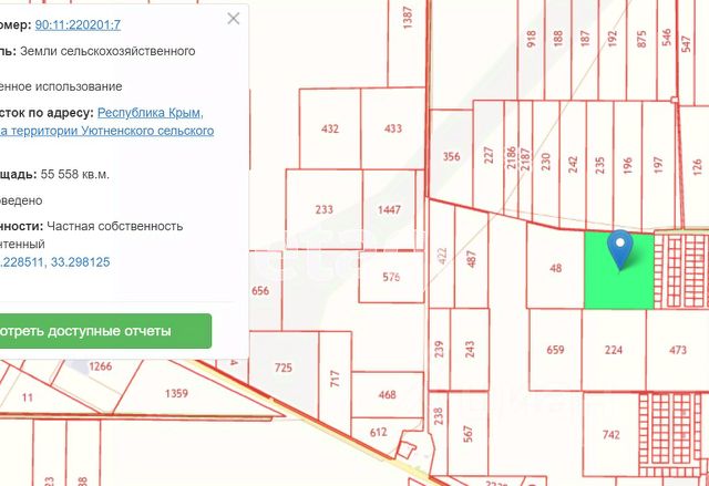 Объект 5125. Отличный участок с/х назначения рядом с развязкой трассы Симферополь - Евпатория - Мирный. Инвестируйте в реальный актив — землю! Продается участок земли площадью 4,29 гектара. Почему это выгодно? Готовый бизнес: Землю можно сдать в аренду местному фермеру. Можно получать пассивный доход. Рост стоимости: Земля — самый надежный актив, который с каждым годом только дорожает. Низкие риски: Все документы проверены, собственность. Об участке: Место: Республика Крым, Сакский район, на территории Уютненского сельского совета. Кадастровый номер: 90:11:220201:865. Также продаются соседние участки земли. Отличный шанс для начинающего фермера или опытного инвестора! Звоните, пишите, покажу в любое время!