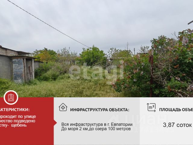 Продается участок 4.5 сотки в СНТ Авиатор,прописка Евпаторийская. Участок правильной формы,построек нет,что является большим преимуществом,Вы сможете обустроить данный участок по своему вкусу и предпочтению. Вода заведена на участок.Свет по заявлению в Крымэнерго. Подключение СНТ к газу уже согласовано,ведутся работы. Рядом в пешей доступности рынок Привоз. До моря 10 минут. Межевание участка проведено,документы РФ. При звонке сообщите нам, пожалуйста, номер: Z3957