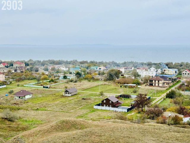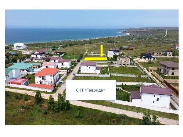 Участок в курортном поселке Таврида (пос.Новоотрадное) - местная "Рублёвка". Вид с высокого берега на море и пляжи. Площадь 8 соток, размеры 25м * 32 м, вид использования садоводство. Без насаждений. Участок не попадает в водоохранную зону Азовского моря.