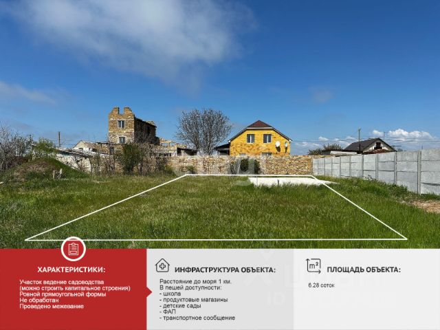 Продается привлекательный ЗЕМЕЛЬНЫЙ УЧАСТОК, в селе Уютное, в садовом кооперативе Прибой, в 3 км от города Евпатории. До моря 30 минут пешком. Площадь участка 12 соток. Категория земель: земли населенных пунктов. Вид разрешенного использования: садоводство. Участок ровный, правильной формы. Вода центральная на участке + скважина. Огорожен, есть въезд для автомобиля. Участок располагается в очень хорошем месте, недалеко от ледового катка им. Авербуха, садика и школы. Удобные подъездные пути. В поселке есть все для комфортной жизни: магазины, школа, детский сад, амбулатория. Документы РФ. Продаю земельный участок под садоводство в селе Уютное Сакского района.