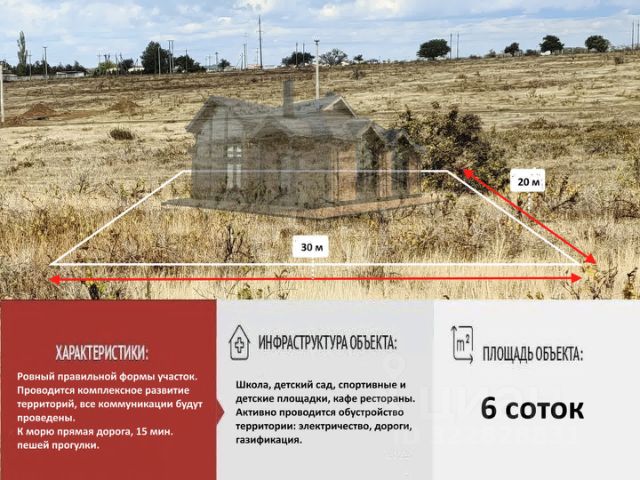 Продаётся уникальный участок, площадью 6 соток, близ живописного пгт. Николаевка, Симферопольского района! Это ваше идеальное место для жизни и отдыха, где до моря всего 10 минут пешком. Представьте себе утренние прогулки по пляжу и вечерние встречи с друзьями на берегу всё это станет реальностью! Николаевка это не просто поселок, а настоящая жемчужина, где жизнь кипит и радует разнообразием. Здесь вы найдёте всё необходимое для комфортной жизни: школу, детский сад, амбулаторию и станцию скорой помощи. Множество магазинов, включая крупные сетевые супермаркеты, обеспечат вас всем необходимым. Для активного отдыха и досуга в вашем распоряжении рынки, дома культуры, уютные кафе, гостиницы, парки, детские и спортивные площадки, стадионы всё для вашего удобства и наслаждения! Не упустите шанс стать владельцем этого замечательного участка, где природа и комфорт гармонично сочетаются. Создайте свой идеальный дом в окружении красоты и уюта, наслаждайтесь загородной жизнью и удивительными пейзажами! Звоните прямо сейчас, чтобы узнать все подробности и записаться на просмотр! Ваш новый дом ждет вас! Код объекта: 7653429 МЫ ГАРАНТИРУЕМ ФИНАНСОВУЮ БЕЗОПАСНОСТЬ ДЛЯ НАШИХ КЛИЕНТОВ. Полное юридическое сопровождение сделки. Высокий шанс одобрения ипотеки. Звоните, с удовольствием ответим на ваши вопросы! Код пользователя: 160388 Номер в базе: 7653429