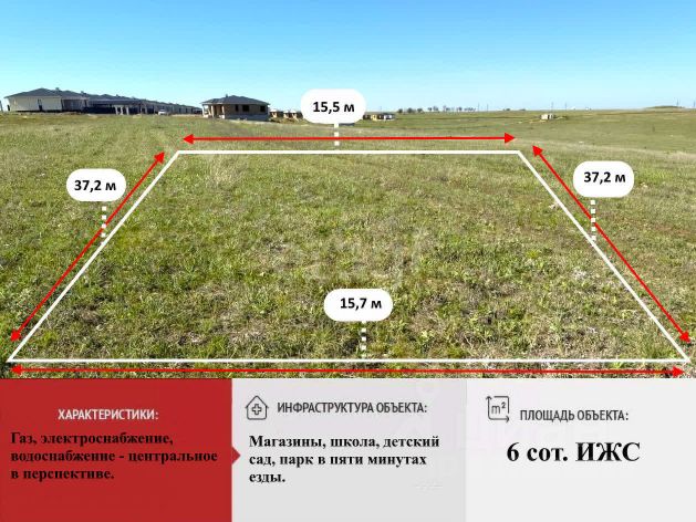 Земельный участок имеет ровную прямоугольную форму, что оптимально для строительства жилого дома.