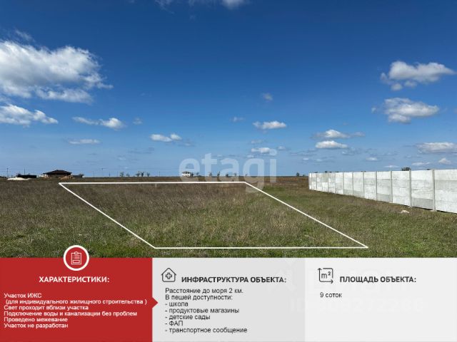 Вашему вниманию предлагается шикарный участок 6 соток ИЖС в Уютном, отличное расположение ! Возможно подключение электричества, подключение воды - скважина! В скором времени будет подключение газа! Межевание проведено! Участок расположен в непосредственной близости города Евпатория! Рядом строятся такие проекты как ЖК Мойнаки и ЖК Море, со своей инфраструктурой! Будет обустроена набережная озера Мойнаки, что делает район еще более привлекательным! Район активно застраивается! Расстояние до моря 2 км! В Уютном есть абсолютно все, что необходимо : магазины, аптеки, детский сад, школа, амбулатория, спортивные площадки , мечеть, церковь и многое другое! Спешите, предложение ограничено!