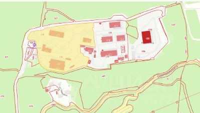 На территории расположены административно-бытовой корпус, общежитие, склады,