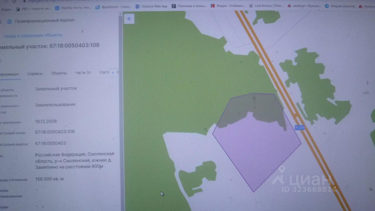 земельный участок, находящийся в государственной собственности Смоленской области, из категории земель сельскохозяйственного назначения с кадастровым номером 67:18:0050403:108 площадью 156 000 кв. метров, расположенный по адресу: Российская Федерация, Смоленская область, Смоленский район, южнее дер. Замятлино на расстоянии 800 м, с видом разрешенного использования - для сельскохозяйственного производства