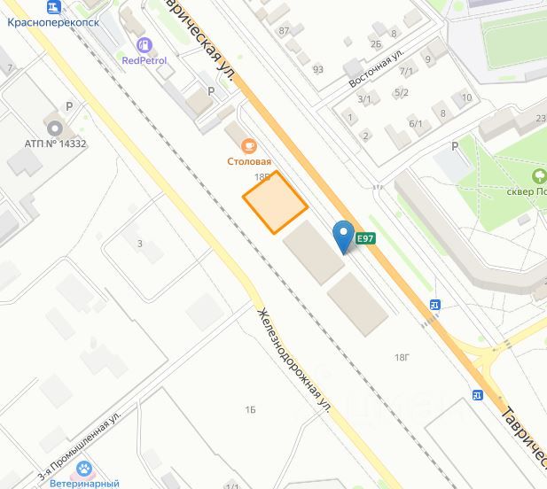 Земельный участок по адресу: Республика Крым, г Красноперекопск, ул. Таврическая уч. 18В, муниципальной формы собственности, площадью 1799,00 кв.м, кадастровый номер 90:20:010118:952, вид разрешенного использования "объекты дорожного сервиса", расположен в зоне транспортной инфраструктуры объектов автомобильного транспорта (Т1), категория земель — земли населенных пунктов