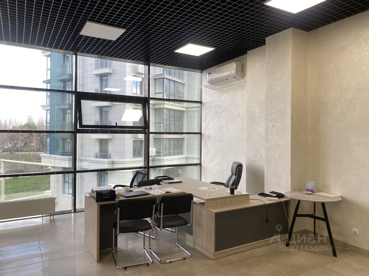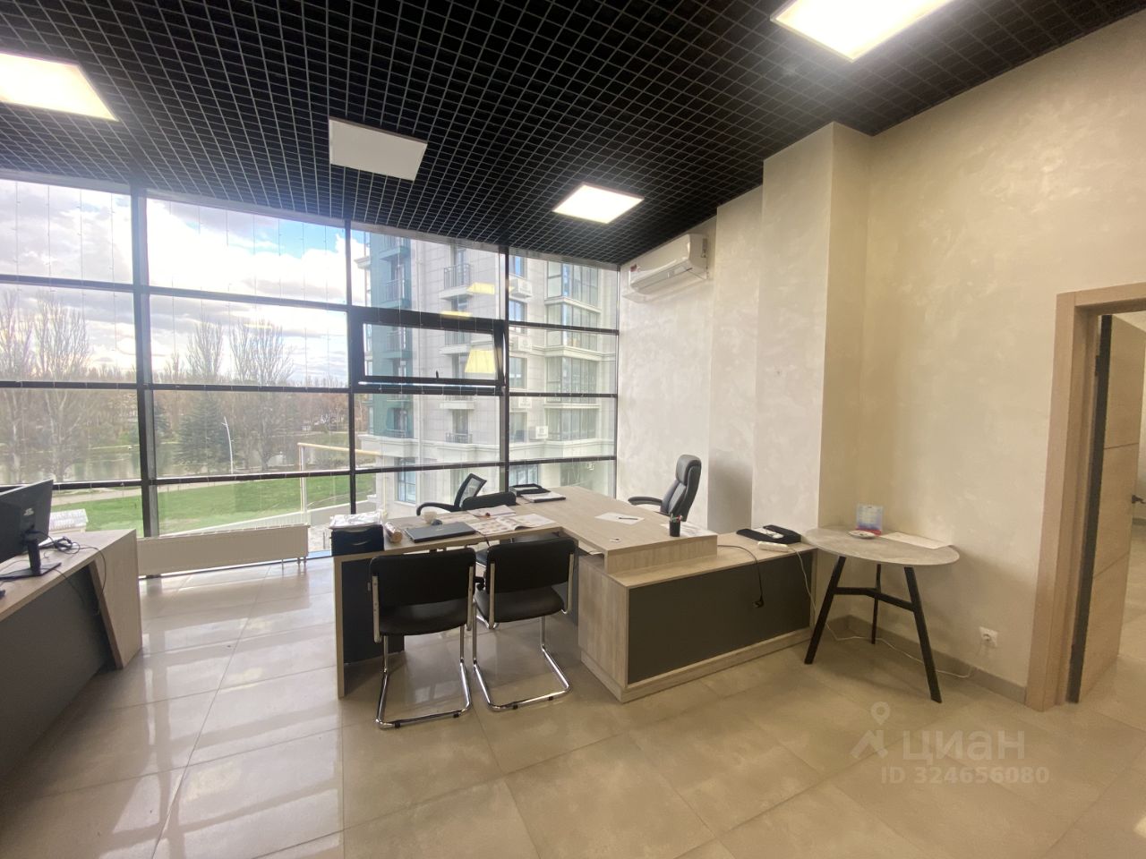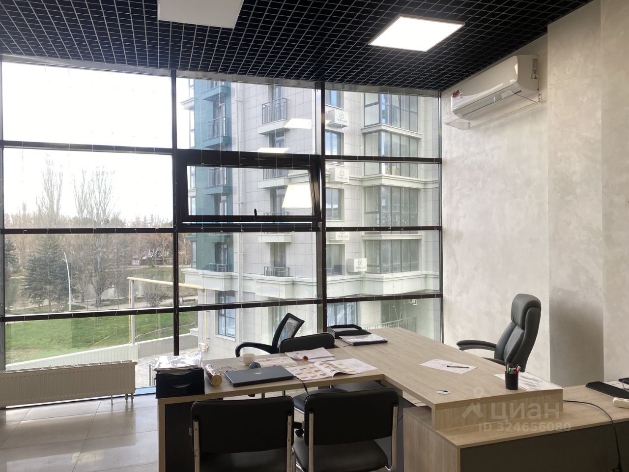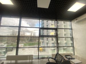 Офис находится на 3 этаже. Огромные панорамные окна в пол, вид на парк им. Гагарина.
