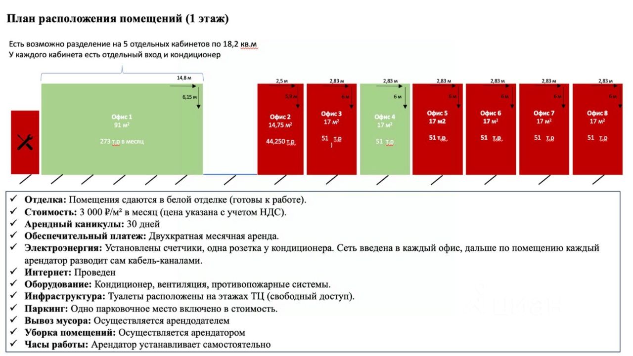 Стоимость: 3 000 ₽/м² в месяц (цена указана с учетом НДС).