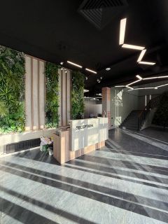 В офисе сделан качественный ремонт, есть мебель, маленькая переговорная, зона ресепшен, современные и чистые санузлы, большой кабинет обучения, оснащенный всей необходимой мебелью и техникой