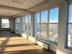 Здание состоит из трех залов, каждый из залов можно разбить на кабинеты/сделать нужные перегородки под себя. В целом, на 3-х этажах может получиться 10-15 кабинетов. На каждом этаже отдельный санузел.