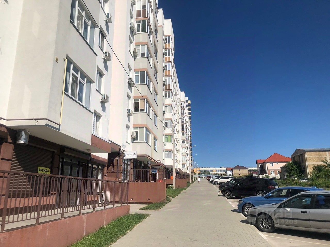 Напротив помещения большая парковка
