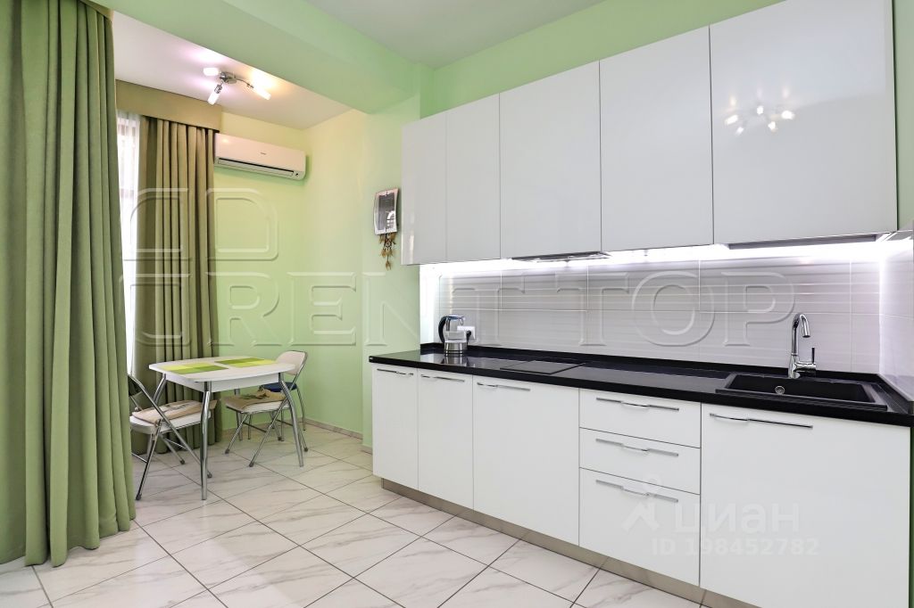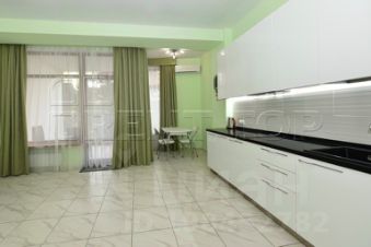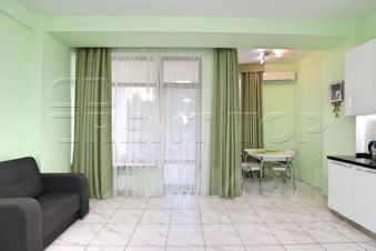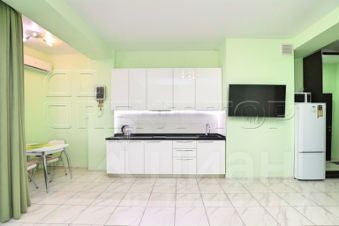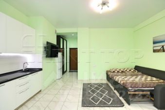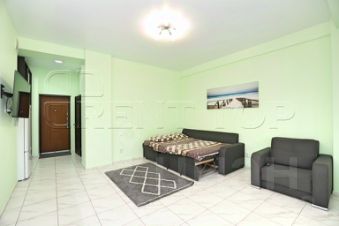 Размещение до 3 гостей. Планировка формата open space включает кухонную зону и жилое пространство с диваном-кроватью и раскладным креслом. Современный интерьер выполнен в светлой гамме.